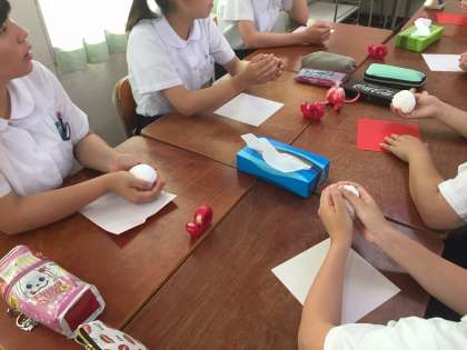 保育進学コースのある高校の先生に出前授業をしていただきました。生徒たちは園児とするお遊戯を練習し、その後おもちゃ作りをしました。