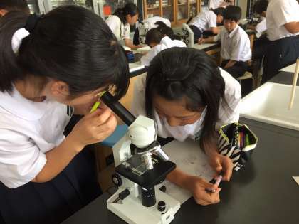 1年生が理科室で気孔の観察を行っていました。生徒たちは顕微鏡で観察し、スケッチをしていました。