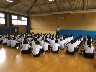 生活面、健康面、学習面の話を2年生の学年の先生からお話がありました。学年主任の先生からのお話では、「1学期を短く感じた人?」という問いに、ほとんどの生徒が手を挙げていました。職場体験や学習等、いろいろな面で熱心に取り組んだ結果だと思います。