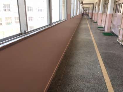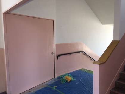 先週から中央階段、3階の壁の塗り直し作業も大詰めを迎えております。作業員の方々が下地からていねいに形成していただいたおかげで壁を塗っていただいたところはとてもきれいになりました。この状態をずっと維持できるように意識を高く持ち、レベルアップしていきましょう。