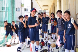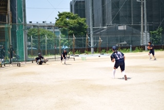 ソフトボール部がグラウンドで練習をしておりますが、顧問の先生より水分補給の時間を随時取りながら練習していました。