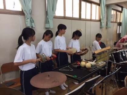 1年生を中心に音合わせをし、パーカッションには2年生も入り演奏の練習をしていました。