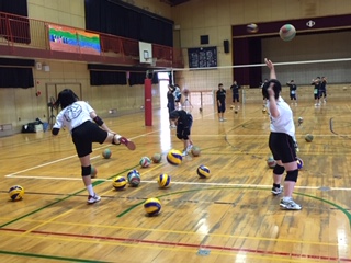 女子バスケットボール部の練習の後にバレーボール部の練習がありました。3年生中心に熱い練習が行われていました。