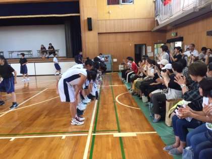 女子バスケットボール部は歌島中学校と対戦しましたが残念ながら負けてしまいました。生徒たちの最後の涙は今まで頑張ってきた証です。楽しかったこと、辛かったこといろいろあったと思います。ここまで応援していただいた保護者の皆様、ご家族の方々、本当にありがとうございました。