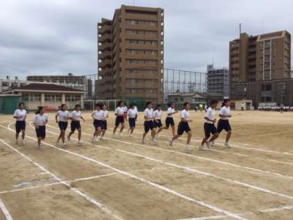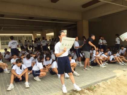 競技が進む裏で召集係が生徒たちを集め、次の種目の準備にあたります。
