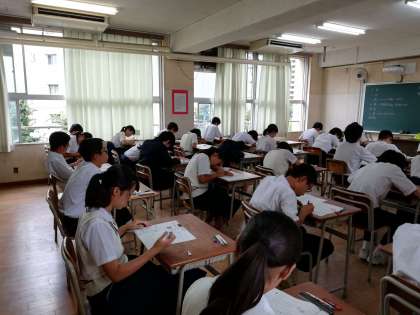 今日は統一テストがありました。程よい緊張のなか、3年生の生徒たちは集中し問題を解いていました。