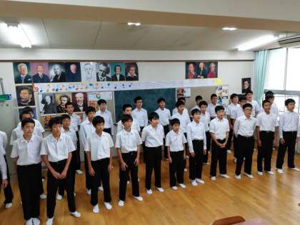2年生は昨日、合唱コンクールがありました。今日からは学芸発表会のための練習です。1・2組と3・4組に分けてさらにアルト、ソプラノ、男声パートで練習をしました。4クラスが合わせて歌う本番を楽しみにしてください。