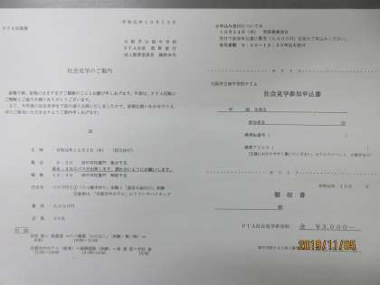 12月5日(木)実施予定の「PTA社会見学」追加募集(残り3席)について