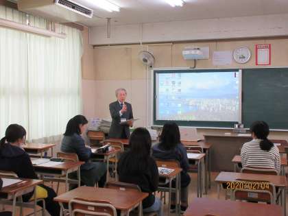 近いうちに発生する確率が高いとされる「南海・東南海地震」のお話から始まり、津波のビデオ、過去の地震統計から出された分析データ、災害の備えなどの講義をしていただきました。参加された先生方から、「実際に何ができるだろうかと不安になりました」「生命(いのち)の尊さ・重さについて考えさせられました」「佃の地域は液状化と津波を想定した避難誘導をしなければいけないことが理解できました」等の意見が出ました。