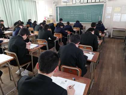 1,2年生は今日、学年末テスト2日目です。1時間目社会でした。2年生の社会の問題では、近年の入試問題に関して「事実等に関する知識の習得」をみるための記述問題も出題されていました。
