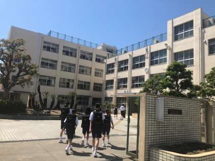 各クラス11名〜12名、時間を分けての登校で、中庭に集合した後、教室に移動しました。