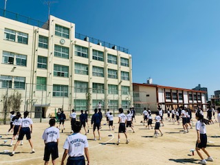 今日は2年生の登校日でした。 3回に分けての分散登校。 みんなで運動場に出て、元気に運動しました。