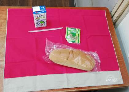今日の給食はコッペパン 牛乳 お茶めな大豆 以上