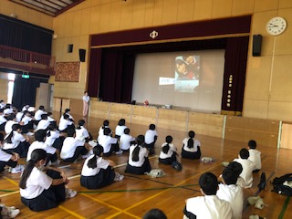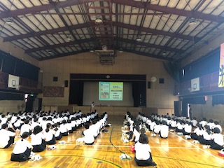 本日1時間目に体育館にて、NTT docomoの方に来校していただき、「スマホ携帯安全教室」の授業を行いました。