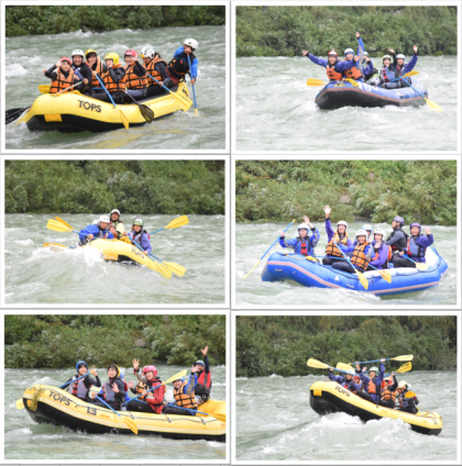 今日のラフティングの様子です。水量が多かったですが生徒たちは楽しんでいました。
