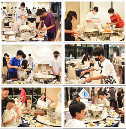 ホテルにて手際よく食事準備をしてくれた食事係の生徒たち。食後は多くの生徒がボランティアで食器の片づけをしました。修学旅行の延期で受け入れてくれたホテルの方々への感謝の気持ちを行動で示しました。