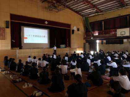 10月29日(木) 体育館で、11月13日(金)に実施される万博記念公園での校外学習について、概要説明が行われました。初めての学校外での活動が、充実したものになってほしいと思います。