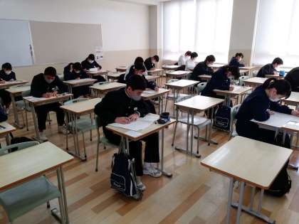 好文学園女子高等学校で西淀川区四中合同模試がありました。本校からも多くの生徒が参加し、5教科の試験を受けました。学校内で受けるテストとは違い、生徒の中には受験の本番を意識した生徒もいたようです。