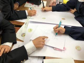 本日の6時間目、校外学習の事後学習として、各班に分かれてポスター制作を行いました。