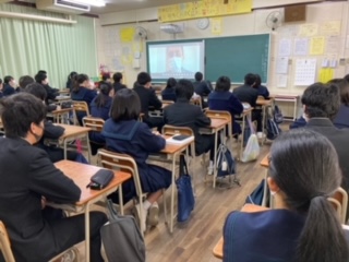 今日の全校集会は校長室と各クラスをteamsで繋ぎ、行われました。