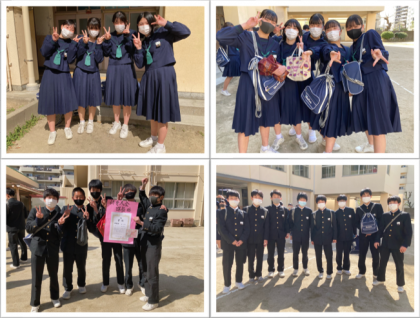 3年生は卒業式の予行の後、帰りました。 今日の午後の3年生の下校時の様子です。