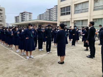 本日、本校の40期生が卒業を迎えます。 現在、中庭に集まっています。
