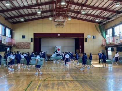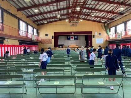 新2・3年生の生徒専門委員の生徒たちが明日3日(土)の入学式準備をしました。