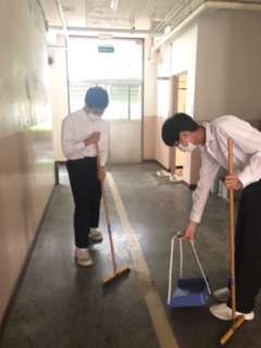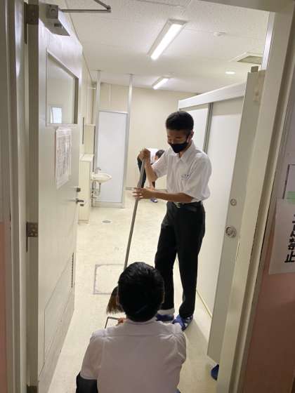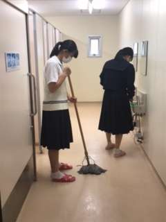 部活動待機をしているサッカー部、ソフトボール部の子たちや、居残りで学習をしている子たちが自主的にトイレや廊下を掃除してくれました。