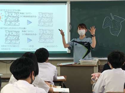 2年5組の理科の授業では、先生の問いに大きな声で答える生徒たちの姿がありました。楽しそうに授業に参加している姿です。