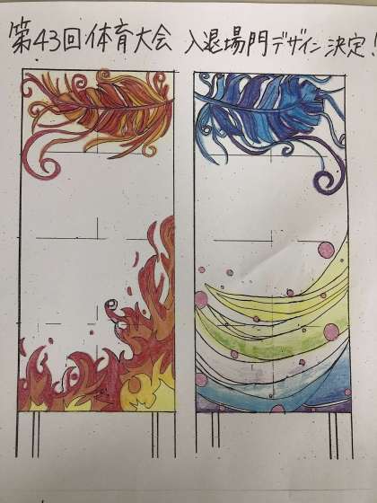 第43回体育大会の入場門のデザインが決定しました。こちらは2年生の生徒の作品です。
