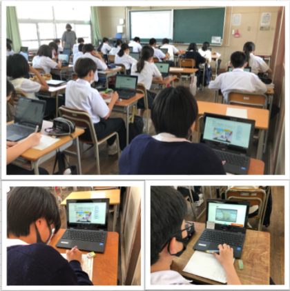 1人1台端末を使い、調べもの学習をしています。