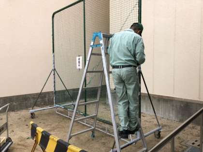 昨日から本校の管理作業員さんに防球ネットを修理していただいています。金属の腐食で外れた状態では危険なので、溶接と補強をしていただいています。いつも学校の修繕に尽力し生徒の安全に配慮していただきありがとうございます。