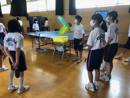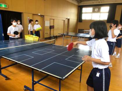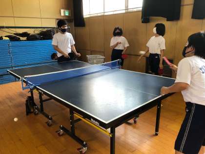 今日の卓球部の練習では、2年生が1年生に技術指導をしていました。来週は試合もあり、練習にも気合が入っています。