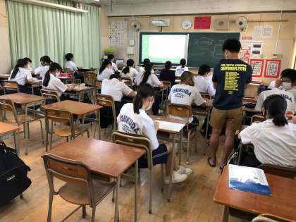 今日から夏休みに入り、1,2,3年の各学年では補習をしています。3年生は朝から国語、理科と補習をしています。理科では圧力の学習をしていました。