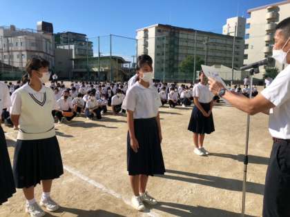 今日は陸上競技部、サッカー部、水泳部の表彰伝達がありました。夏の大会の頑張りが多くの結果に繋がりました。