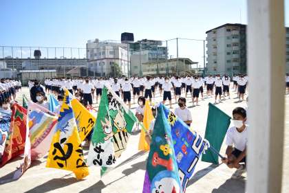 晴天に恵まれた今日の午後、体育大会の予行が始まりました。