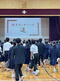 校外学習で人と防災未来センターに行きます。班の列を組んだり電車に乗る時の並び方、マナーなどの諸注意を行いました。