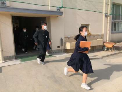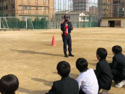 今日の6時間目に避難訓練がありました。西淀川消防署から消防隊員の方々に来ていただき、講評をいただきました。