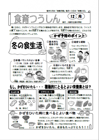 11月30日(火) 食育つうしん 公開日 2021/11/30 更新日 2021/11/30 お知らせ 11月の食育つうしんです。 こちらをクリック ⇓ 12月食育つうしん表 12月食育つうしん裏 いいね(0)