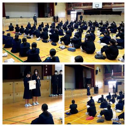 本日の学年集会では、「ありがとう」の感謝の気持ちや「ごめんなさい」の謝る気持ちを大事にし、小さなことでも自分で行動し、感謝の気持ちを伝えようというお話がありました。
