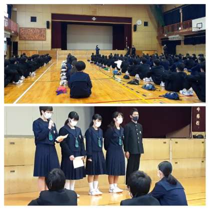 また、生徒会からお知らせがあり、20日から24日まで挨拶運動と、ボランティア活動を行います。