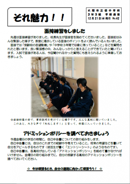 大阪府下の公立高校の入試には自己申告書が必要です。
