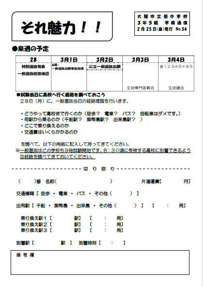 公立願書を書き終え、いよいよ公立一般入試の出願に向けて来週の月曜日には入試当日の経路を確認します。