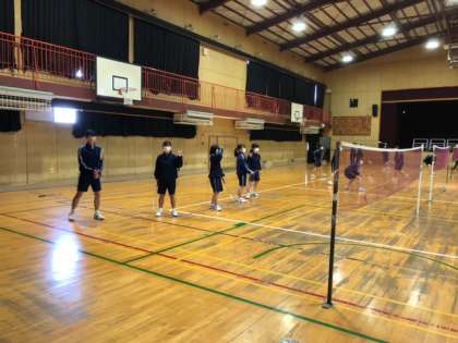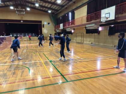 3年生の体育の授業はバドミントンをしています。生徒たちは楽しく活発に授業に取り組んでいます。