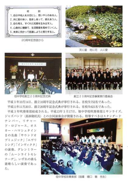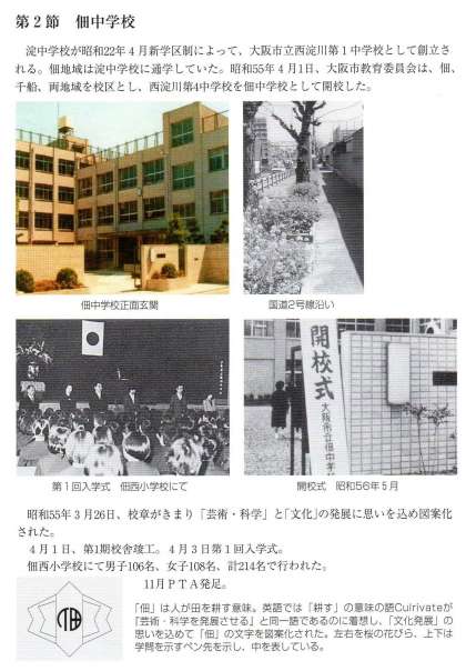 6月1日は本校の創立記念日です。昭和55年に開校以来多くの皆様に支えられ、歴史を積み重ねてきました。平成15年7月23日に大阪佃史探究会から「佃史」が発行されており、そこに本校のことが書かれていました。紹介します。ぜひとも本校に愛着を持ち今後とも本校が発展していくことにご協力をお願いいたします。、