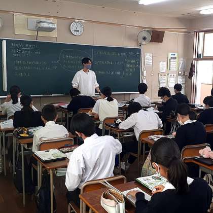技術の授業では、生物育成の技術の学習と特産品地図を作成しています。