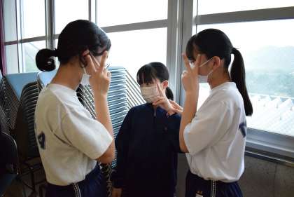 5月12日(木) 2年一泊移住 講堂での取り組み 休憩中