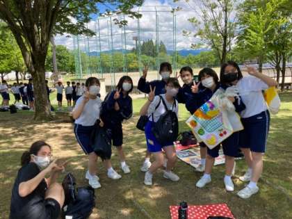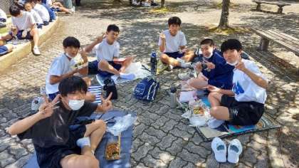 昼食時の様子です。久々の外でのお昼、みんな楽しそうです。