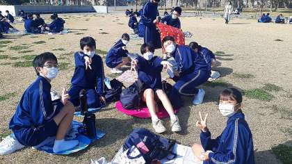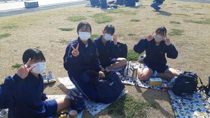 お昼は近くの公園でお弁当です。どれもおいしそうです!