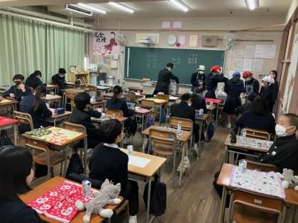 2年2組の給食の準備の様子です。